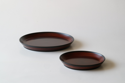 後二枚 : 地固め彫刻楕円皿(黒・朱)